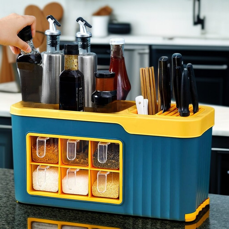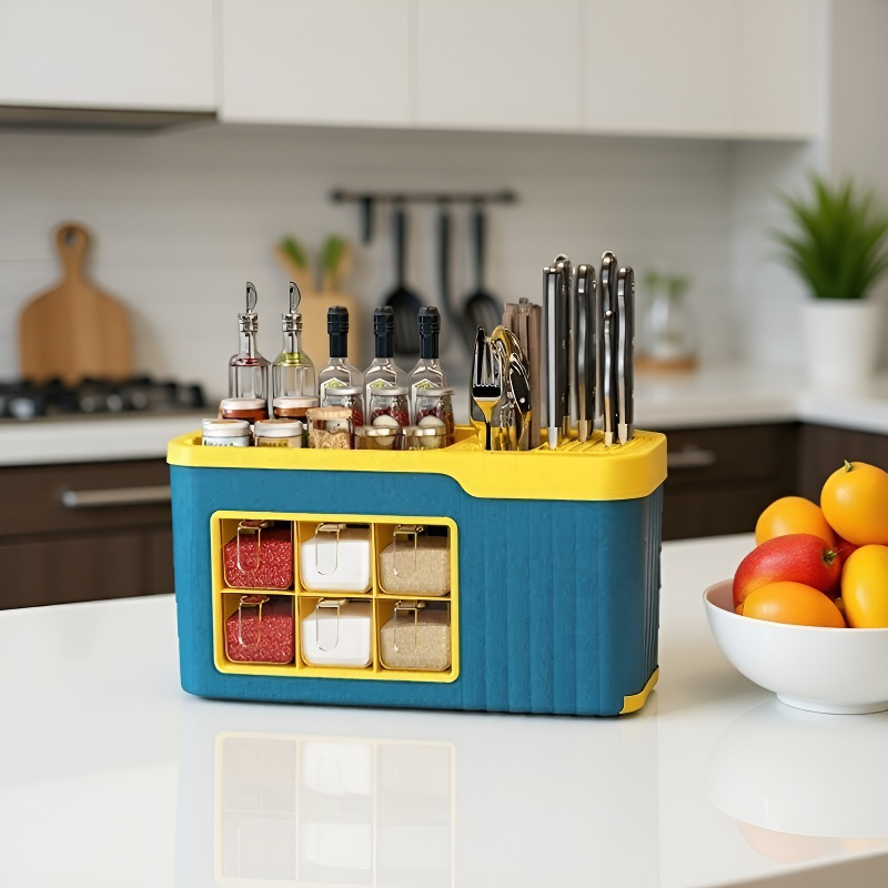 ● 독일 프리미엄 디자인의 주방용 양념통 멀티 수납정리함으로 다양한 조미료와 수저, 칼까지 깔끔하게 정리할 수 있습니다.